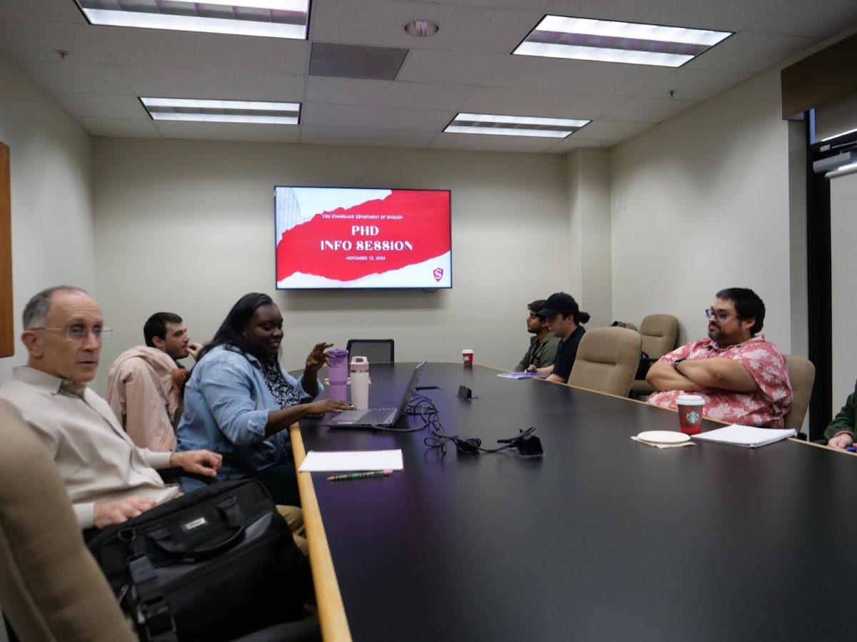 Professors from Stan State’s English department, Jamiee Cook, Ashley Sarpoong, Matthew Moberely and Jesse Wolfe hosted an informational meeting for students considering pursuing a Ph.D.